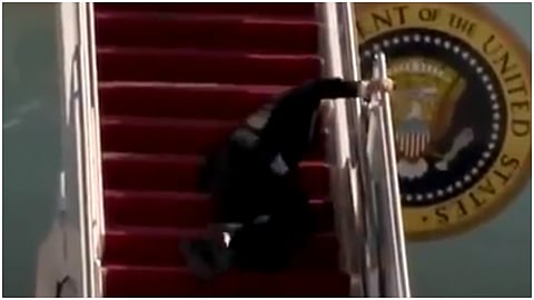 सोशल मीडियावर व्हायरल झालेल्या या व्हिडिओत जो बायडन तीन वेळा एअर फोर्स विमानात प्रवेश करताना पायऱयांवर अडखळल्यामुळे पडताना दिसले. पायऱ्या चढताना त्यांचे संतुलन बिघडल्याने ते अडखळल्याचे व्हिडिओत दिसतात. त्यामुळे ते तीन वेळा पडले. दोन वेळा त्यांनी स्वतःला सावरण्याचा प्रयत्न केला. हातावर जोर देऊन ते उठलेही. परंतु, तिसऱ्या वेळी मात्र त्यांना गुडघ्यावर जोर देऊन उठावे लागले. त्यावेळी त्यांनी स्वतःला व्यवस्थितपणे सावरले आणि एकट्याने पायऱ्या चढून सुरक्षितपणे विमानात प्रवेश केला. एअर फोर्स विमानाच्या प्रवेशद्वाराजवळ आल्यानंतर त्यांनी सर्वांना हात उंचावत अभिवादनही केले. डोनाल्ड ट्रम्प यांना पराभूत करणारे 78 वर्षीय बायडन हे अमेरिकेचे आतापर्यंतचे सर्वात वयस्कर राष्ट्राध्यक्ष आहेत.