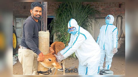 मांगले : दुभत्या जनावरांपासून होणाऱ्या ब्रुसेलोसिस या संसर्गजन्य आजारापासून मानवी आरोग्याला धोका निर्माण झाला आहे. या आजाराला ‘झुनोटीक डीसीस’ म्हणतात. त्याची तीव्रता वाढल्यास पशुपालकांना नपुंसकत्व येऊ शकते. या आजाराविरुद्ध आता लसीकरण मोहीम सुरू झाली असून, पशुवैद्यकीय अधिकाऱ्यांनाही पीपीई किट घालूनच उपचार करावेत, अशा सूचना देण्यात आल्या आहेत.