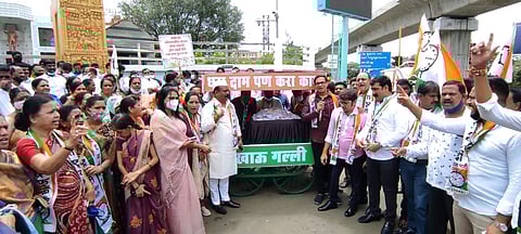 पिंपरी : महापालिकेतील भ्रष्ट्राचाराविरोधात राष्ट्रवादी कॉंग्रेसने (ncp) बुधवारी ‘खाऊ गल्ली’ आंदोलन केले. ‘धरा दाम पण करा काम’ अशा घोषणा दिल्या. पाचशे व दोन हजार रुपये किंमतीच्या खेळण्यातील नोटा ‘खाऊ गल्ली’ या हातगाडीवर ठेवल्या होत्या.
