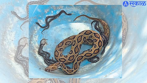 याबाबतची माहिती अशी की, शनिवारी (ता. १७) सकाळी सातला सर्पमित्र सपकाळे यांना श्री. लंके यांचा फोन आला, की त्यांच्या गायीच्या गोठ्यात भला मोठा साप आहे. तो गायीला चावू शकतो. लवकर या.