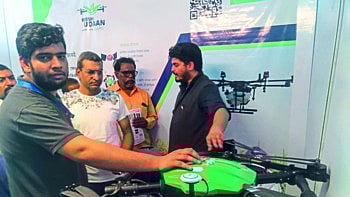 शेती व्यवसायात अत्याधुनिक तंत्रज्ञानाच्या वापराने वेळ आणि पैशांची बचत व्हावी, शिवाय कष्टही कमी करण्याच्या हेतूने कृषी उडान ड्रोनद्वारे शेतीवर भर दिला जाणे आता काळाची गरज बनली आहे. याचाच एक भाग म्हणून जळगावात आयोजित कृषी प्रदर्शनात शेतकऱ्यांना ड्रोन शेतीविषयी प्रात्यक्षिक देण्यात आले. या अत्याधुनिक तंत्रज्ञानाची जिल्ह्यायातून आलेल्या शेतकऱ्यांसह, उच्चशिक्षित प्राध्यापक, अभियांत्रिकीच्या विद्यार्थ्यांनी माहिती जाणून घेतली.