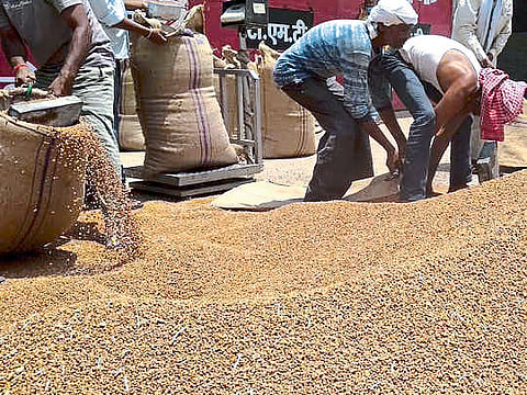 व्यापाऱ्यांना हरभऱ्याची विक्री करत असून, क्विंटल मागे ८०० ते हजार रुपयांचे नुकसान होत आहे. (As government procurement has not started farmers are selling gram to traders and are incurring loss per quintal jalgaon news)