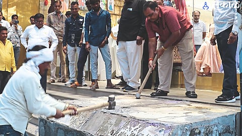 Jalgaon Municipality News : तळमजल्यावरील वाहनतळाचा उपयोग व्यावसायिक गाळे म्हणून केल्याने नोटीस मिळाल्यावर त्याठिकाणी वाहनांसाठी पार्किंग व रॅम्प तयार करण्याचे प्रतिज्ञापत्र देऊनही ते केले नाही. म्हणून, मनपा प्रशासनाने शीतल कलेक्शनच्या संबंधित अतिक्रमित जागेवर हातोडा चालवला. या कारवाईचा पुढचा टप्पा म्हणून मंगळवारी (ता.५)जेसीबीने खोदकाम पूर्ण करण्यात येणार आहे.(Jalgaon administration hammered encroached site concerned of Sheetal Collection)