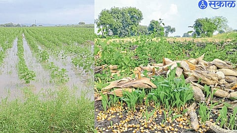 कळमसरे (ता. अमळनेर) : मारवड मंडळात काल शुक्रवारी (ता.१८) रात्री कळमसरेसह पाडळसरे, शहापूर, तांदळी, नीम, गोवर्धन, मारवड खेडी, वासरे, बोहरा व परिसरात जोरदार पाऊस झाला. त्यामुळे जनजीवन विस्कळीत झाले. यात अनेक शेतांचे बांध व जलसंधारणची कामे फुटून शेतीसह पिकांना मोठा फटका बसला. त्यामुळे शेतकऱ्यांचे मोठे आर्थिक नुकसान झाले. अचानक सुरू झालेल्या वादळी पावसाने शेती पाण्याखाली आली. कपाशी, मका, ज्वारी, सोयाबीन आदी पिकांचे मोठ्या प्रमाणावर नुकसान झाले. (Heavy rains in area including Kalamsare have caused economic damage to farmers neglect of administration )