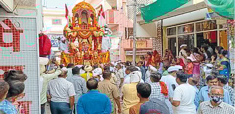 कडोजी महाराज संस्थानचे आठवे गादीवारस शांताराम महाराज भगत, शारदाबाई भगत आणि अमृत खलसे, विजया खलसे, सतीशचंद्र काशिद, उज्ज्वला काशिद, तुषार भगत, योगीता भगत, गणेश चौधरी, प्रतिभा चौधरी, गोविंद अग्रवाल, संजय गरुड, पंडित जोहरे, शांताराम गुजर, सुधाकर बारी आदींच्या हस्ते रथाची महापूजा झाली. सर्व नगरसेवक, सागर जैन, ॲड. प्रसन्न फासे, रवींद्र गुजर, डॉ. पंकज सूर्यवंशी, महेंद्र गुजर आदी मंडळी उपस्थित होते.