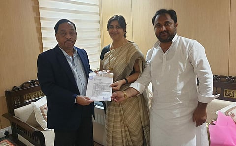 अमळनेरः मंगरूळ (ता अमळनेर) येथील औद्योगिक वसाहतीच्या (Industrial Estate) विस्तारीकरण व वाढीसाठी मूलभूत सुविधा निर्माण करण्यासाठी शासन (Government) स्तरावरून निधी मिळण्यासाठी ॲड.ललिता पाटील व बाजार समिती संचालक पराग पाटील यांनी केंद्रीय मंत्री नारायण राणेंची (Union Minister Narayan Rane) भेट घेऊन साकडे घातले.