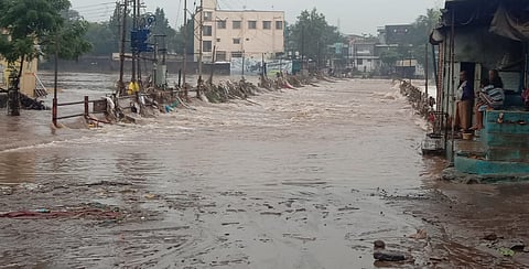 जळगावः चाळीसगाव परिसराव पून्हा आभाळ फाटले असून ३० व ३१ आॅगस्ट रोजी आलेल्या पुराच्या कटू आठवणी पून्हा आठव्या दिवशी जागा झाल्या आहे. पुन्हा ढगफुटी सदृष्य पाऊस (Heavy Rain) झाल्याने चाळिसगाव मधील सर्व लघू प्रकल्प (Dam Overflow) ओसंडून वाहत आहे. त्यामुळे गिरणा नदी व इतर नद्या दुथडी (Flood) भरून वाहूत आहे. यापूर्वीच ओव्हरफ्लो झालेल्या मन्याड धरण परिसरात पुन्हा ७ रोजीच्या मध्यरात्री आणि ८ रोजीच्या पहिल्या प्रहरी ढगफुटी सदृष्य पाऊस झाल्याने धरणातून सद्यस्थिती एक लाख क्युसेस पाण्याचा (Flood Alert) विसर्ग सुरु आहे.