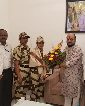 धरणगाव : महाराष्ट्र सुरक्षा बलात कार्यरत असणार्या लता बन्सोले या मूळच्या अमळनेरकर रणरागिणीने नुकतीच जीवाची पर्वा न करता लोकल समोर पडलेल्या प्रवाशाचा प्राण वाचविल्याने त्यांचे कौतुक होत आहे. या पार्श्वभूमिवर राज्याचे पाणी पुरवठा व स्वच्छता मंत्री तथा जिल्ह्याचे पालकमंत्री गुलाबराव पाटील यांनी मुंबईत त्यांना बोलावून त्यांच्या कर्तृत्वाचा सन्मान केला.