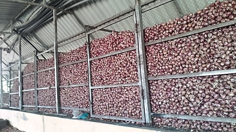 मेहुणबारे (जि. जळगाव) : चाळीसगाव तालुक्यात कांद्याला पाहिजे तसा भाव मिळत नसल्याने बळीराजा हताश झाला आहे. या वर्षीच्या उन्हाळी कांद्याचे (Onion) गिरणा परिसरात विक्रमी उत्पादन (Record Production) झाले. परंतु भाव नसल्याने शेतकऱ्यांनी कांदा चाळीत भरण्यास सुरवात केली आहे. त्यामुळे कांद्याने वांधा केला असून, खर्चही निघत नसल्याने काद्यांबाबत शासनाने ठोस धोरण ठरवावे, अशी मागणी होत आहे. (onion Record production pushed prices down in Chalisgaon Jalgaon News)