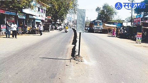 येथील पालिकेच्या महात्मा गांधी बहुउद्देशीय सभागृहासमोर दुभाजकावर वाहने आदळली जाऊन अपघातांची मालिका सुरू आहे. (radium on board installed between dividers on Ankleshwar Berhanpur highway has disappeared within eight days jalgaon news)