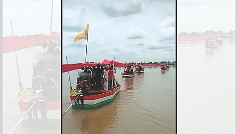सकाळी तापी मातेची प्रतिमा आणि पाण्याने भरलेला घट यांची शोभायात्रा काढण्यात आली. ही शोभायात्रा वाजंत्रीच्या गजरात पताका घेऊन तापीमाईचा जयघोष करीत नदी किनारी जाऊन जन्मोत्सवासाठी आणलेली साडी ही नावाडी संघटनेचे सदस्य उपस्थित असलेले ग्रामस्थ यांनी धरून १०८ मीटर लांबीच्या साडीचा आहेर नौकांद्वारे किनाऱ्यावरून तापीपात्रात नेऊन चुनरी, खण नारळ व सोळा श्रृंगार अर्पण करण्यात येऊन तापीमाईची महाआरती करण्यात आली.