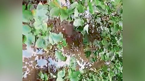 कजगाव परिसरात सोमवारी (ता. २७) व मंगळवारी (ता.२८) झालेल्या अतिवृष्टीने उरलीसुरली शेतातील पिकेही जमीनदोस्त झाली आहेत. शेतांमध्ये तीन ते चार फूट पाणी तुंबले असून, हे पाणी ३५ तासांनंतरही तसेच असल्याने पिके सडतील, अशी स्थिती आहे. अनेक पिकांनी मान टाकल्या आहेत. शेतात तुंबलेले अथांग पाणी बांध फोडून बाहेर काढण्यासाठी शेतकरी केविलवाणा प्रयत्न करत असल्याचे चित्र सर्वदूर नजरेस पडत आहे. तुंबलेले पाणी लवकर निघाले, तर निदान झालेला खर्च तरी पदरात पडेल, याच आशेने सर्वत्र हेच चित्र नजरेस पडत आहे.