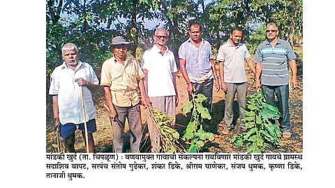 अभियानांतर्गत सरपंच संतोष गुढेकर, प्रगतिशील शेतकरी आणि गावकर शंकर डिके, श्रीराम घाणेकर, संजय धुमक, कृष्णा डिके, तानाजी धुमक यांनी गावच्या सीमा हद्दीत पट्टा जाळून गावच्या सभोवती गोल रिंगण मारले. यापूर्वी ग्रामस्थांनी लोकसहभागातून गावच्या जुन्या तळ्यातील गाळ उपसून पाणी साठवले. याचा फायदा काही शेतकऱ्यांना झाला. प्रायोगिक तत्त्वावर मांडकी खुर्द गावात केले जाणारे उपक्रम नेहमीच गावच्या विकासाला पूरक असल्याचे मत सरपंच संतोष गुढेकर यांनी मांडले.