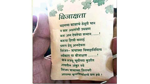 यजमानांनी अक्षताऐवजी चक्क भेंडी, पालक, पावटा, मुळा व कोथिंबीर या भाज्यांच्या बियांची पाच सुंदर पाकिटे उपस्थितांना दिली व साध्या कुंडीत या बिया रुजवून दीड महिन्याने रोज घरच्या घरी ताज्या भाज्या खायला मिळतील, अशी संधी घेण्याची विनंती केली.