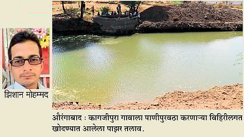 औरंगाबाद - गावाला पाणी पुरवठा करणाऱ्या विहिरीचे पाणी खोल गेल्याने महिन्यातून एकदाच नळाला पाणी येते; मात्र पाझर तलाव खोदण्याचा ‘जुगाड’ करून त्यात गावाबाहेरील तलावाचे पाणी आणले आणि विहिरीला संजीवनी मिळाली. या विहिरीतून २२ दिवसांना होणारा पाणीपुरवठा आता १२ दिवसांवर आला आहे. कागजीपुऱ्यातील गावकऱ्यांनी तलावात मोटारी न टाकण्याचा निर्धार केल्याने या मोहिमेला बळकटी मिळाली आहे.