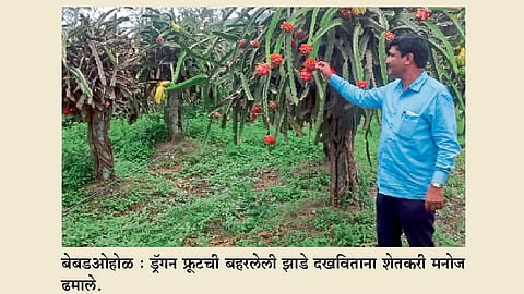 सोमाटणे - बेबडओहोळ येथील मनोज ढमाले यांनी खडकाळ माळरानावर ड्रॅगन फ्रूटची झाडे लावून पंचवीस लाखांचे उत्पादन काढले.