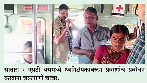 बारामती-इचलकरंजी बसमध्ये (क्र. एमएच १४ बीटी २९५५) चढताच श्री. चाचर यांनी प्रवाशांचे मनःपूर्वक स्वागत केले. प्रवासादरम्यानच्या काही सूचना केल्या. तिकीट फाडल्यानंतर हातात ध्वनिक्षेपक घेऊन समाजातील काही प्रथा, परंपरांबाबत प्रबोधन केले. बसमधून उतरताना प्रत्येक प्रवासी त्यांना धन्यवाद देत होते. चक्रपाणी रामचंद्र चाचर (वय ३८) यांचे मूळ गाव मावडी कडेपठार (ता. पुरंदर). २०११ मध्ये ते बारामती एमआयडीसी आगारात रुजू झाले. प्रवाशांचे बसमध्ये स्वागत करणे, बसमध्ये सजावट करणे, काही धार्मिक प्रबोधनात्मक गाणी वाजविणे, तब्येतीचा त्रास होणाऱ्या प्रवाशांना औषधे देणे, बसमध्ये पिण्याचे पाणी ठेवणे, वर्तमानपत्र ठेवणे अशा अनेक सुविधा देताना एसटी प्रवासाबाबत ते नेहमी जनजागृती करतात.