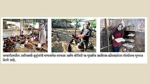 नागालॅंडमधील भारतीय कृषी संशोधन परिषदेच्या केंद्राने नागालॅंडमधील सतरा गावांमध्ये ‘पथदर्शी कुक्कुटपालन गाव` हा प्रकल्प राबविला. सतरा गावांमधील ७३८ आदिवासी कुटुंबांना गेल्या वर्षभरात २५,३१९ सुधारित जातींच्या कोंबडी पिलांचा पुरवठा करण्यात आला. याचबरोबरीने परसबागेत कोंबड्यांच्या व्यवस्थापन, त्यांच्यासाठी निवारा, खाद्य नियोजन, लसीकरण याबाबत कुटुंबातील सदस्यांना विशेष प्रशिक्षण देण्यात आले. कुटुंबातील सदस्यांनी कोंबडी पिलांचे चांगले व्यवस्थापन ठेवल्याने त्यांची वाढ चांगली झाली.