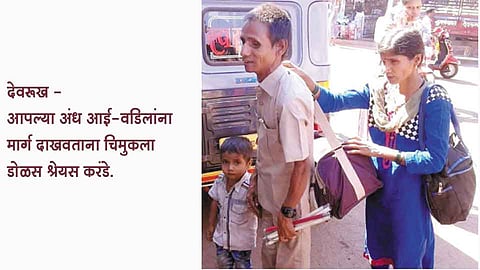 देवरूख - वयाच्या सातव्या वर्षी अचानक मोठा ताप आला आणि त्यांना आपली दृष्टी कायमची गमवावी लागली. तरीही जिद्द न हरता त्यांनी छोटे मोठे काम सुरूच ठेवले. जन्मजात अंध मुलीशी विवाह करून संसारगाडा सुरू केला. या दोघांच्याही जीवनात श्रेयसरूपी प्रकाशाचा नवा किरण जन्माला आला. आई-वडील दोघेही अंध असले तरी ३ वर्षांचा चिमुकला श्रेयस त्या दोघांची दृष्टी बनला आहे. आपल्या चिमुकल्यासह संसाराचा गाडा ओढताना अंधत्व कुठेही आड येत नाही. संगमेश्वर तालुक्यातील देवरूखजवळच्या माळवाशी गावातील अंकुश करंडे यांच्या जिद्दीची ही कहाणी.