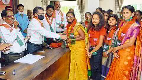 रत्नागिरी - लांजा तालुक्यातील विविध गावातील मोठ्या संख्येने युवक, महिला आणि नागरिकांनी भाजपात प्रवेश केला. लांजा तालुक्याला विकासाच्या मार्गावर वेगाने पुढे नेण्यासाठी शेतकरी वर्ग, युवक या सर्वांना विकास प्रक्रियेत सहभागी करून घेण्यासाठी भाजप उत्तम कार्य करेल, हा विश्वास पंतप्रधान नरेंद्र मोदी यांच्यावर ठेवत साठ जणांनी भाजप प्रवेश केल्याचा दावा जिल्हाध्यक्ष ऍड. दीपक पटवर्धन यांनी केला.