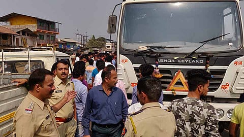 मुंबई-गोवा महामार्गावर सकाळी साडेअकराच्या सुमारास जिते गावाजवळ डंपरने (एमएच४६/एआर ५५३१) पुढे जाणाऱ्या दुचाकीस्वाराला (एमएच ०६/ बिवाय १९८) जोरदार धडक दिली. या धडकेत दुचाकीस्वार यशवंत घरत हे जागीच ठार झाले. यशवंत घरत हे खारपाडा येथील रहिवाशी असल्याने अपघातानंतर खारपाडा येथील संतप्त गावकऱ्यांनी घटनास्थळी धाव घेऊन रास्तारोको केला. यावेळी संतप्त ग्रामस्थानी डंपरच्या काचा फोडल्या. तसेच मृतदेह रस्त्यावर ठेऊन डंपर चालकांवर गुन्हा दाखल करण्याची मागणी केली.