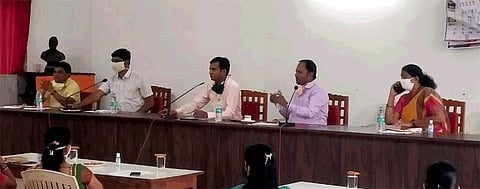 कोरोनाबाबत जिल्हा प्रशासन आणि जिल्हा परिषद, पंचायत समिती सदस्य यांची जिल्ह्यातील पहिली समन्वय सभा जिल्हा परिषद अध्यक्ष रोहन बने यांच्या उपस्थित रविवारी (ता. 17) देवरूख येथे झाली. बैठकीला माजी उपाध्यक्ष संतोष थेराडे, महिला व बालकल्याण सभापती रजनी चिंगळे, सभापती बंडा महाडिक, राजापूर- लांजा विधानसभा क्षेत्रप्रमुख जयाशेठ माने, तहसीलदार, गटविकास अधिकारी, सर्व विभागाचे खातेप्रमुख, विस्तार अधिकारी सर्व जिल्हा परिषद सदस्य, पंचायत समिती सदस्य उपस्थित होते.