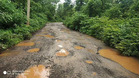 नांदगाव (सिंधुदुर्ग) - कासार्डे गडमठमार्गे फोंडा मार्गावर कासार्डे तिठा ते दाबवाडी दरम्यानच्या रस्त्यावर मोठ-मोठ्या खड्ड्यांचे साम्राज्य निर्माण झाले आहे. यामुळे वाहनचालक व पादचाऱ्यांना नाहक त्रास सहन करावा लागत आहे. सध्या मुसळधार पावसामुळे याच खड्ड्यांत पाणी साचून अपघाताची शक्यता निर्माण झाली आहे. त्यामुळे तातडीने खड्डे बुजविण्यात यावेत, अशी मागणी वाहनचालक व स्थानिक करीत आहेत.