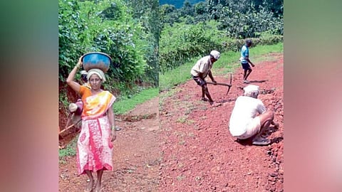 देवरूख-वायंगणे अशी नियमित एसटी सुरू असते. मात्र, त्यासाठी कोंडवाडीतील लोकांना वायंगण्यात पायी जावे लागते. ही गरज ओळखून पांगरीचे सरपंच सुनील म्हादे यांनी वायंगणेत येणारी गाडी कोंडवाडीपर्यंत यावी, अशी मागणी सातत्याने केली होती. यासाठी वायंगणेतील मनसे शाखाप्रमुख समीर रांबाडे यांचेही प्रयत्न सुरू होते. या प्रयत्नांना यश येऊन नुकतीच एसटी महामंडळाने कोंडवाडीपर्यंत बसफेरीची चाचणी घेतली. हा रस्ता खूपच खराब आहे. त्यामुळे त्याची डागडुजी होणे गरजेचे आहे. गाडी वळण्यासाठीही जागा नव्हती, ही प्राथमिक गरज ओळखून ग्रामस्थांनी श्रमदानाने रस्ता व्यवस्थित केला. मोठमोठे खड्डे भरले. ग्रामस्थांच्या या कार्याचे सर्वत्र कौतुक होत आहे.