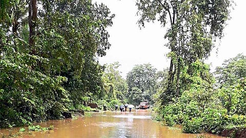 कणकवली - चौपदरीकरणात शहरातून पश्चिमेच्या दिशेने जाणारे नाल्याचे बांधकाम योग्य पद्धतीने न झाल्याने शहरातील काही भागात पाणी साचले होते. महामार्गाचीही तीच अवस्था होती. पर्यायी रस्ता व मोरीचे बांधकाम खचल्याने पहाटेपासून वाहतूक अधूनमधून ठप्प होत होती.