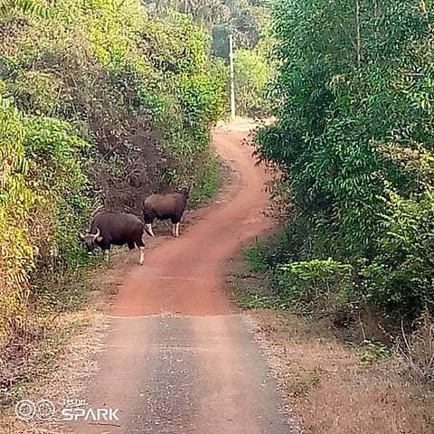 तब्बल अर्धा तास गवे याठिकाणी होते. यावेळी गव्यांना हुसकावून लावताना दोन्ही गव्यांनी सावंत यांच्यावर हल्ला करण्याच्या उद्देशाने पाठलाग केला. सावंत यांनी प्रसंगावधान दाखवत लागलीच जवळच्या झाडीचा आसरा घेतला, त्यामुळे ते हल्ल्यातून बालंबाल बचावलेत. हा रहदारीचा रस्ता आहे; मात्र गवे याठिकाणी बिनधास्त वावरत होते. सावंत यांनी सांगितले की, त्यांना नेहमीच शेतात ये-जा करताना गव्यांचे दर्शन होते; मात्र आज गव्यांनी पाठलाग केल्याने भीतीचे वातावरण निर्माण झाले आहे.