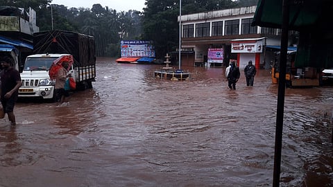 राजापूर - परतीच्या वादळी पावसाने तालुक्यात धूमाकूळ घातला आहे. काल रात्रीपासून सतत पडणार्या पावसामुळे अर्जुना-कोदवली नद्यांना पूर आला. वेगाने वाढणार्या पाण्याने 4 तासाच्या कालावधीमध्ये शहराला आज (ता.15) सकाळी वेढा घातला. जवाहरचौक परिसर सुमारे पाच फूट पुराच्या पाण्याखाली गेला. घुसणार्या पाण्याने बाजारपेठेतील व्यापार्यांच्या मनामध्ये चांगलीच धडकी भरविली. दुकानातील माल सुरक्षित ठिकाणी हलविताना त्यांची तारांबळ उडाली.
