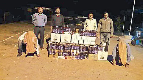 याबाबत सविस्तर माहिती अशी की, गोव्याहून कोल्हापूरच्या दिशेने मोटारीतून गोवा बनावटीच्या दारूची चोरटी वाहतूक होणार असल्याची माहिती पथकाला मिळाली होती. त्यानुसार अबकारी खात्याचे जिल्हा अधीक्षक डॉ. बी. एच. तडवी यांच्या मार्गदर्शनाखाली निरीक्षक एस. एच. चव्हाण, सहाय्यक दुय्यम निरीक्षक चंद्रकांत कदम, जवान रमेश चंदुरे, शरद साळुंखे, संदीप कदम यांच्या पथकाने बांदा - दाणोली मार्गावर ओटवणे फाटा येथे सापळा रचला. रात्री साडेबारा वाजण्याच्या सुमारास बांद्याहुन आंबोलीच्या दिशेने जाणाऱ्या फियाट मोटारीला (एमएच 09 डीएक्स 3275) तपासणीसाठी थांबविण्यात आले.