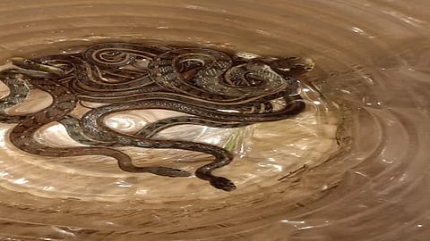 दाभोळ (रत्नागिरी) : दापोली तालुक्यातील जालगाव कुंभारवाडी येथील शैलेश जालगावकर यांच्या घराजवळ एक नव्हे तर तब्बल सात साप आढळून आले मात्र ग्रामस्थांनी सतर्कता दाखवत तत्काळ सर्पमित्र किशोर निवळकर यांना फोन केला व बोलवून घेतले, निवळकर यांनीही तात्काळ धाव घेत दापोली शहराजवळ जालगाव कुंभार वाडी येथे एक नव्हे तर तब्बल सात बिनविषारी सापांना जिवंत पकडून त्यांना नैसर्गिक अधिवासात सोडून त्यांना जीवदान दिले आहे.