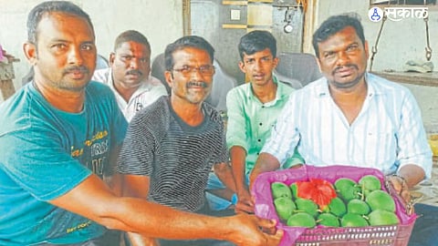 त्यांच्या बागेतील हापूसच्या कलमांना १५ ऑगस्टच्या आसपास मोहोर येण्यास सुरुवात झाली होती. पावसामुळे तसेच बदलत्या वातावरणामुळे काही कलमांवरील मोहोर गळून पडला; मात्र चार-पाच कलमांवरील मोहोर राहिला. प्रयोग म्हणून आलेला मोहोर टिकवण्यासाठी शिंदे बंधूंनी खूप मेहनत घेतली. मोहोराची काळजी घेतल्याने त्यातून उत्तम फलधारणा झाली. त्यामुळेच चार कलमावरील उत्पादित झालेल्या आंब्याचे पहिले फळ काढून ‘देवगड हापूस’ची पहिली पेटी आज विधिवत पूजा करून वाशीला पाठविली.