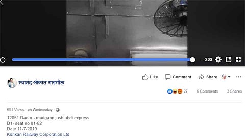 एका प्रसिद्ध टीव्ही मालिकेतील अभिनेते स्वानंद हे दादर-मडगाव या जनशताब्दी एक्स्प्रेसने गुरूवारी प्रवास करत होते. त्यावेळी त्यांच्या जागे शेजारी डी 1 या डब्यात पावसाचे पाणी गळत होते. पावसाचे पाण्याच्या या गळतीने अनेक प्रवासी भिजतही होते. रेल्वेगाडीत टपटप गळणाऱ्या पावसाचा व्हिडीओ स्वानंद यांनी तयार केला व तो फेसबुकवर अपलोड केला. या व्हिडिओत त्यांनी रत्नागिरी येथील प्रा. उदय बोडस यांना टॅग केला. व्हिडीओ पाहिल्यावर प्रा. बोडस यांनी तो व्हिडीओ कोकण रेल्वे क्षेत्रीय प्रबंधक उपेंद्र शेंड्ये यांच्याकडे पाठवला. श्री. शेंड्ये यांनी या घटनेची तातडीने दखल घेत मडगाव कार्यशाळेतील अधिकाऱ्यांना सांगितले. मडगाव येथील कर्मचारी वर्गाने भर पावसात तात्पुरती उपाययोजना करून सुरू असलेली गळती रोखली.