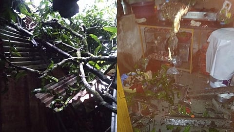 रात्री जेवण उरकून विश्वास बिर्जे पत्नी निलम, दोन छोट्या मुलांसह घराच्या मागील पडवीतील खोलीत झोपले होते. मध्यरात्री एक वाजता अचानक अंगावर मोठे काहीतरी पडल्याची त्यांना जाणीव झाली. त्यामुळे घाबरलेले पती-पत्नी तत्काळ जागे होवून त्यांनी खोलीतील लाईट सुरू केली. खोलीमध्ये छप्परावरील तुटलले पत्रे पाहून स्वतः जखमी झालेल्या स्थितीमध्ये छोट्या मुलांना घेवून खोलीबाहेर पडले. ही माहिती शिळचे उपसरपंच अशोक पेडणेकर आणि सहकार्यांना कळताच त्यांनी तत्काळ किरकोळ जखमी झालेल्या विश्वास बिर्जे पत्नी-पत्नीला खासगी रुग्णालयात दाखल करून त्यांच्यावर उपचार केले.