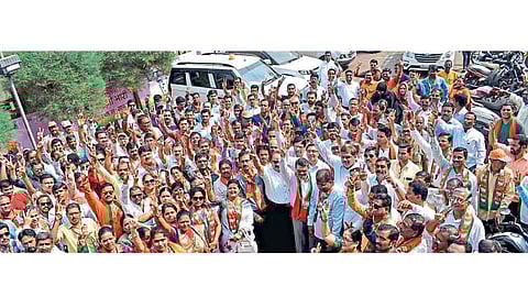 भारत माता की, वंदे मातरम्, पंतप्रधान नरेंद्र मोदी आगे बढो, देवेंद्र फडणवीस आगे बढो, दीपक पटवर्धन आगे बढो, येऊन येऊन येणार कोण भाजपशिवाय आहे कोण, अशा अशा घोषणांनी जयस्तंभ परिसर दणाणून गेला. जुन्या-नव्या कार्यकर्त्यांना बरोबर घेऊन या पोटनिवडणुकीत विजय मिळवणारच, असा संकल्प या वेळी केला. मेळाव्यामध्ये प्रभाग १४ मधील सचिन गांधी व फौजिया वस्ता यांनी भाजपमध्ये प्रवेश केला.