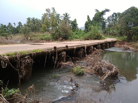 दाभिल, तेरेखोल, गडनदीचा त्रिवेणी संगम या पुलाच्या 100 मिटर अंतरावर आहे. गडनदीला पूर आल्यानंतर त्याचा उलट परिणाम दाभिल नदीच्या प्रवाहावर होवून या पुलावर अधिकच पाण्याचा जोर वाढतो. त्यामुळे थोड्या पावसातही हे पूल पाण्याखाली असते. सततच्या पाण्याच्या माऱ्यामुळे पुलाच्या क्रॉंक्रीटचे टुकडे पडून आतल्या शिगा, लोखंडी सळ्या दिसू लागल्या आहेत. पुलावर खड्ड दिसू लागले आहेत. त्यामुळे प्रवाशांना जीव मुठीत घेवून प्रवास करावा लागतो.
