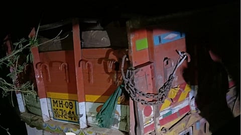 साडवली : रत्नागिरी - कोल्हापूर महामार्गावर आंबा घाटात रविवारी रात्री ८ वाजण्याच्या सुमारास ट्रक क्रमांक MH 09 BC7241दरीत कोसळला. पावस वरून हा ट्रक मलकापूर येथे चिरा घेऊन चालला होता. या ट्रक मध्ये चालक, क्लिनर व हमाल असे प्रवास करीत होते. यामध्ये सचिन पाटील (३३ ) हा जागीच ठार झाला.