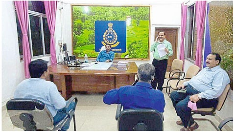 दोडामार्ग तालुक्यातील हत्ती बाधित क्षेत्राची पाहणी करण्यासाठी दोन दिवस सिंधुदुर्गच्या दौऱ्यावर असलेले वनविभागाचे कोल्हापूर मुख्य वनसंरक्षक बेन यांनी येथील उपवनसंरक्षक कार्यालयाला भेट दिली. यावेळी उपवनसंरक्षक समाधान चव्हाण, सहाय्यक उपवनसंरक्षक ईस्माईल जळगावकर आदी उपस्थित होते.