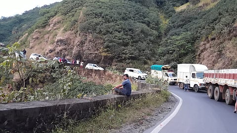 त्यामुळे घाटमार्गात कालपासुन वाहतुकीचा खोळंबा निर्माण झाल्याचे चित्र पाहायला मिळत आहे.एका बाजुची वाहने थांबवुन दुसऱ्या बाजुने येणारी वाहने आळीपाळीने सोडली जात आहे.त्यामुळे २५ ते ३० मिनिटांच्या प्रवासांसाठी आता तासभर लागत आहे.घाटमार्गात सध्या वाहनांची मोठी रांग लागल्याचे चित्र पाहायला मिळत आहे.