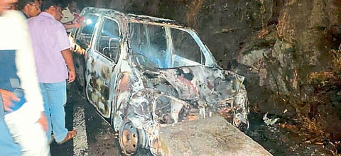 हे दाम्पत्य आज सायंकाळी मोटारीतून (जीए ०७ -७८०५) आंबोलीमार्गे गोव्याकडे जात होते. त्यांच्या गाडीत पुढे पत्नी होती. आंबोली चेकपोस्टवरून ही गाडी सहा वाजून वीस मिनिटांनी घाटाकडे निघाली. आंबोली धबधब्यापासून पुढे साधारण अडीच किलोमीटरवर गाडी आली असता पुढच्या बाजूने इंजिनने पेट घेतला. घटनास्थळावरील स्थिती पाहता चालकाने अचानक आग लागल्याने गाडी रस्त्याच्या बाजूला नेण्याचा प्रयत्न केल्याचे दिसते. ही गाडी रस्त्याच्या बाजूला आदळत गटारात कलंडली.