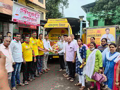 सर्वात मोठ्या "स्वराज्य ध्वजाचे" बल्लाळेश्वर मंदिराजवळ पूजन