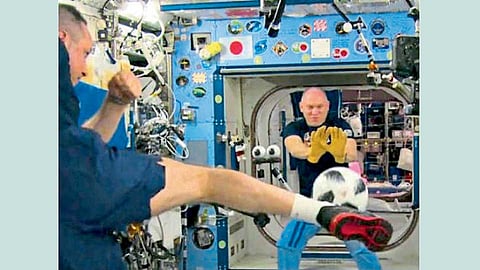 रशियन न्यूज एजन्सी ‘टास’ने अंतराळवीरांनी यानात सराव केलेला फुटबॉल विश्वकरंडक फुटबॉल स्पर्धेच्या उद्घाटनाच्या सामन्यात वापरण्यात येणार असल्याचा दावा केला आहे. मात्र, याला ‘फिफा’कडून अजून दुजोरा देण्यात आला नाही. विविध शास्त्रीय प्रयोग करण्यासाठी श्काप्लेरोव, टिंगल आणि कनाई यांनी पाच महिन्यांहून अधिक काळ अंतराळात घालवला आहे.