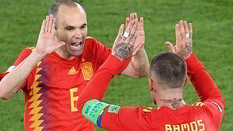 स्पेन आणि मोरोक्को यांच्यातील सामना 2-2 असा बरोबरीत सुटला. सामन्याच्या 14 व्या मिनिटाला स्पेनचा कर्णधार रामॉस व इनेस्टा यांच्यात समन्वयाच्या अभावामुळे मोरोक्कोला पहिला गोल करता आला. मोरोक्कोच्या बऊपायब याने गोल करत मोरोक्कोला आघाडी मिळवून दिली. स्पेनने ही पिछाडी लगेच भरून काढली. 19 व्या मिनिटाला स्पेनच्या इनेस्टा आणि इस्को यांनी अप्रतिम खेळ करत गोल केला. मोरोक्को आपण स्पर्धेबाहेर गेल्याचे माहिती असूनही त्यांच्याकडून जोरदार खेळ करण्यात येत होता. मोरोक्कोने 81 व्या मिनिटाला कॉर्नरवरून इन नेसरी याने हेडरद्वारे गोल करत मोरोक्कोला आघाडी मिळवून दिली. पिछाडीवर असताना स्पेनने आपले स्पर्धेतील भविष्य काय याची माहिती नसताना जोरदार खेळ कायम ठेवला. अखेर भरपाई वेळेत स्पेनच्या 90 (+1) इगो आसपास याने गोल करत स्पेनला बरोबरी साधून दिली. रेफ्रींनी हा गोल ऑफसाईट दिली होती. मात्र, व्हिएआरचा वापर करून हा गोल वैध ठरविण्यात आला. त्यामुळे हा सामना 2-2 असा बरोबरीत सुटला.