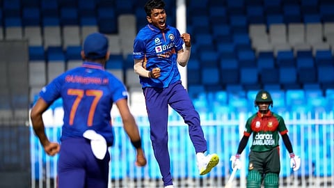दुबई : भारताच्या १९ वर्षाखालील संघाने संयुक्त अरब अमिरातीमध्ये सुरु असलेल्या १९ वर्षाखालील आशिया कपची (ACC U19 Asia Cup)फायनल गाठली आहे. भारताने सेमी फायनलमध्ये बांगलादेशचा १०३ धावांनी पराभव करत दिमाखात फायनल गाठली. प्रथम फलंदाजी करणाऱ्या भारताने ५० षटकात ८ बाद २४३ धावांपर्यंत मजल मारली होती. त्यानंतर टीम इंडियाने (India national cricket team) बांगालदेशचा (Bangladesh) संपूर्ण संघ १४० धावात पॅव्हेलियमध्ये धाडत सामना जिंकला.