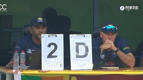 सामन्यादरम्यान श्रीलंकेचे प्रशिक्षक ख्रिस सिल्वरवूड आणि संघाचे ऍनालिस्ट ड्रेसिंग रूममधून सिक्रेट कोड पाठवताना दिसले आहेत. सोशल मीडियावर व्हायरल फोटोंमध्ये दिसते की, सिल्वरवूड संघाच्या ऍनालिस्टसोबत मिळून ड्रेसिंग रूममधून मैदानातील खेळाडूंना सूचक इशारा करत आहेत. त्यांच्यापुढील टेबलवर ‘2डी’ असे लिहिलेल्या दोन पाट्या दिसत आहेत. सध्या याचे काही फोटो सोशल मीडियावर व्हायरल होताना दिसत आहे.
