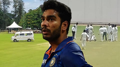 Duleep Trophy Venkatesh Iyer Injury : भारताचा अष्टपैलू खेळाडू व्यंकटेश अय्यर दुलीप ट्रॉफीतील मध्य विरूद्ध पश्चिम विभाग सामन्यात दुखापतग्रस्त झाला. त्याच्या मानेवर वेगाने चेंडू आदळला. त्यानंतर व्यंकटेश अय्यर मैदानवर खाली पडला. घडलेला प्रकार पाहून मैदानावर उभी असलेली रूग्णवाहिका त्वरित मैदानात आली. मात्र सुदैवाने व्यंकटेश अय्यर स्वतः उठून उभा राहिला आणि मैदानावरून चालत बाहेर गेला.