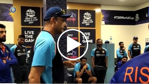 कोहली आणि शास्त्री नामिबिया विरुद्धच्या सामन्यात भावूक झाल्याचे पाहायला मिळाले. कोहली ने शास्त्रींना खास अंदाजात शुभेच्छा दिल्याचे पाहायला मिळाले. कोहलीने मुख्य प्रशिक्षक रवि शास्त्री, गोलंदाजी प्रशिक्षक भरत अरुण यांना जादू की झप्पी देत गुडबाय केले. याशिवाय शास्त्रींनी ड्रेसिंग रुममध्ये सर्व खेळाडूंचे आभार मानले. पाच वर्षांच्या कालावधीत टीम इंडियाने सर्वोत्तम कामगिरी करुन दाखवली आहे. क्रिकेटच्या सर्वच प्रकारातील संघाची कामगिरी अभिमानास्पद असल्याचे सांगत शास्त्रींनी संघातील खेळाडूंचा निरोप घेतला. ड्रेसिंग रुममधील निरोप समारंभातील त्यांचे भाषण सध्या सोशल मीडियावर चांगलेच व्हायरल होत आहे.