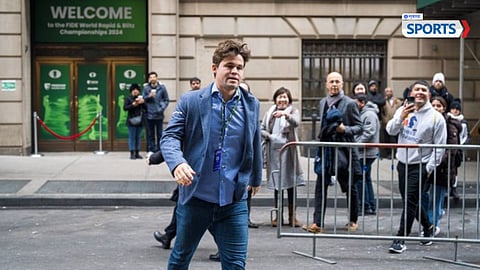 World Rapid and Blitz Chess Championship : शुक्रवारी न्यूयॉर्कमध्ये सुरू असलेल्या जागतिक रॅपिड आणि ब्लिट्झ बुद्धिबळ चॅम्पियनशिप स्पर्धेमधून विश्वविजेत्या मॅग्नस कार्लसनला बाहेर केले गेले आहे. कार्लसनने FIDE च्या ड्रेस कोडचे उल्लंघन केले. त्यानंतर कार्लसनला २०० युएस डॉलर्स दंडासह जीन्स बदलण्यासची सूचना देण्यात आली. पण कार्लसनने जीन्स बदलण्यास नकार दिल्यानंतर त्याला स्पर्धेतून बाहेर काढण्याची कारवाई करण्यात आली.